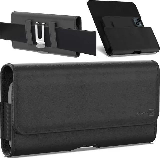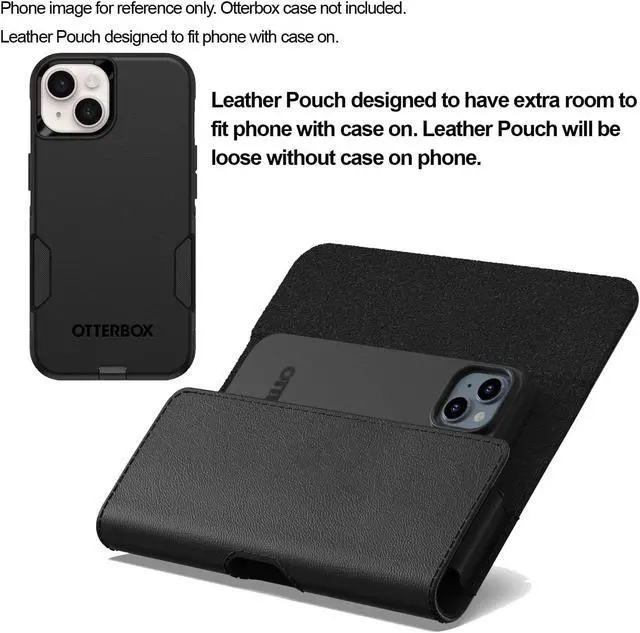 Horizontal holster leather pouch with heavy duty belt clip. Note Fits with case on. Holster will be loose without case on.