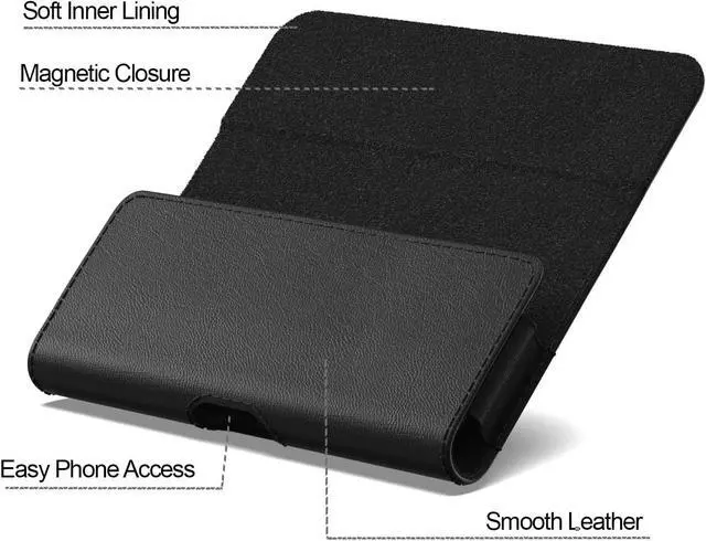 Pouch Dimensions: 7.0 x 3.5 x 0.75M agnetic Closure flop with soft inner lining and back with enhance steel belt clip with belt loop. Luxury smooth and soft touch leather with bottom cutting with easy phone access. Pouch will Fit these