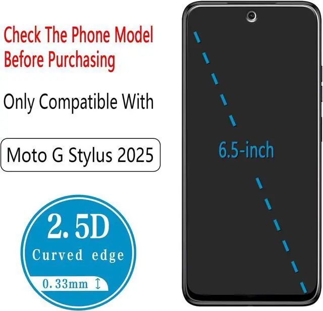 Screen Protector Specifically Designed Only for Motorola Moto G Stylus 2025Highly durable scratch resistant surface hardness 9H Bubble Free Guaranteed Designed for easy installationUltra thin 0.33 mm thickness is reliable and resilient and promises full compatibility with touchscreen sensitivity 2.5D Rounded Edge Glass Rounded edges for comfort on the fingers and handBencuku is committed to provide 100% customer satisfaction Please email us by Via message System for any questions