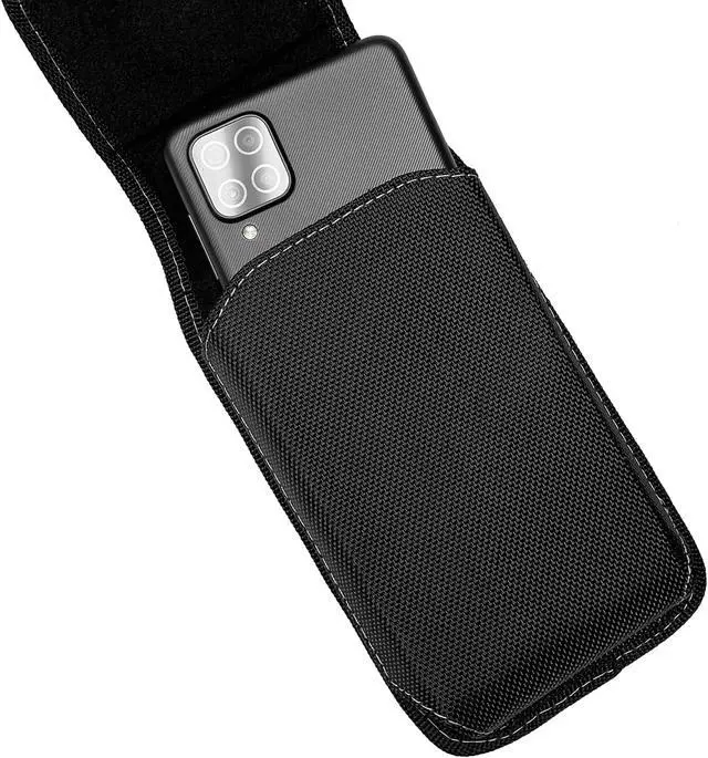 Approximate Inner Dimension: 6.93 x 3.43 x 0.6 in. (176 x 87 x 14 mm). Please use this dimension as reference to check if your phone fits. Made of premium quality nylon pu leather trimming stitched along the edges for a more durable protection. Velvet lined interior prevents the phone from scratches. Magnetic flip cover closure and elastic bands on the side safely secure the phone in place. Metal belt clip for quick clip-on/remove the pouch from belt or run the belt through the pu leather loops to secure the pouch. Perfect for outdoor activity and constructional work.