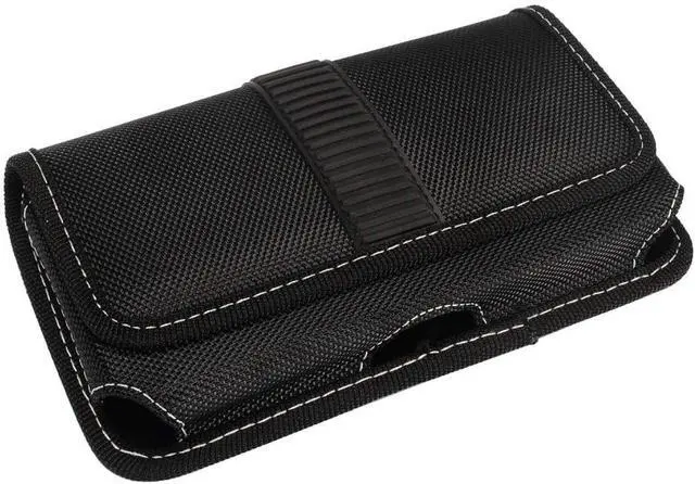 Approximate Inner Dimension: 6.93 x 3.43 x 0.6 in. (176 x 87 x 14 mm). Please use this dimension as reference to check if your phone fits. Made of premium quality nylon pu leather trimming stitched along the edges for a more durable protection. Velvet lined interior prevents the phone from scratches. Magnetic flip cover closure and elastic bands on the side safely secure the phone in place. Metal belt clip for quick clip-on/remove the pouch from belt or run the belt through the pu leather loops to secure the pouch. Perfect for outdoor activity and constructional work.