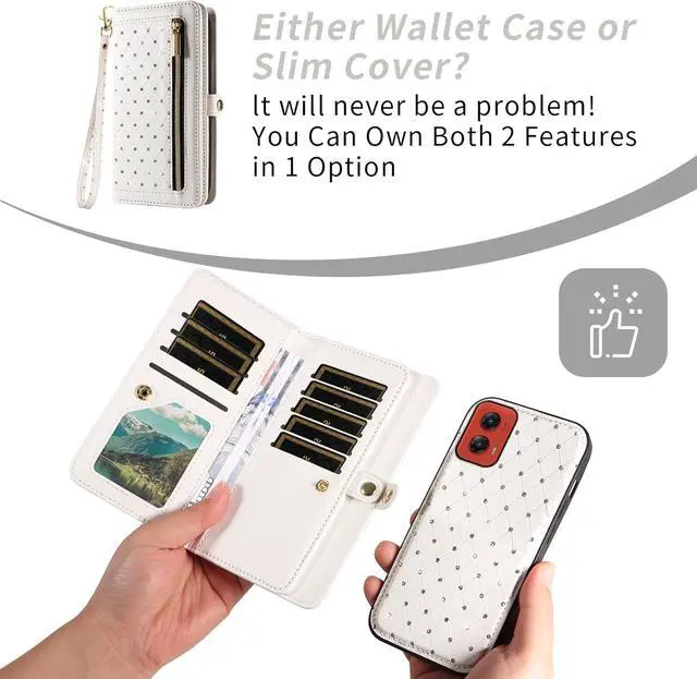 Card Slots & Zipper: This case includes 9 card slots + 4 cash slots + 1 zipper bag hold your ID credit cards driver license bills coins key and a little bit cash without problems. Whether you're heading to the store or walking the dog this wallet phone case is perfect for when you don't want to carry a purse outdoors. Support Detachable &