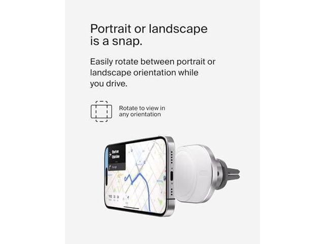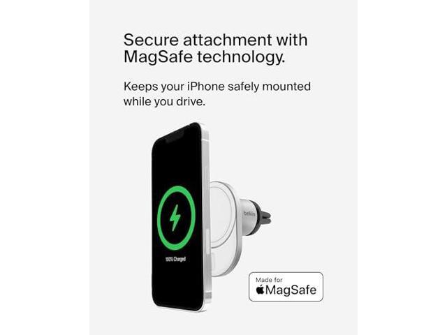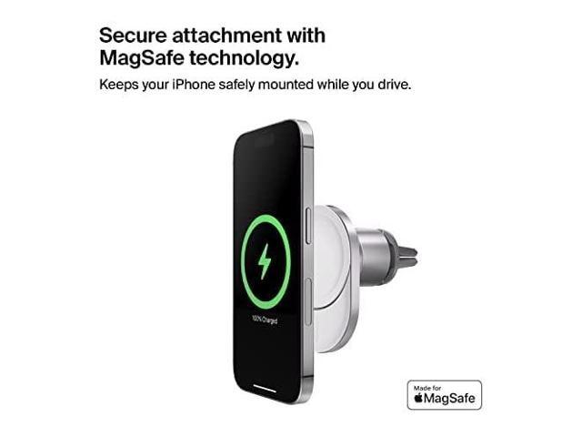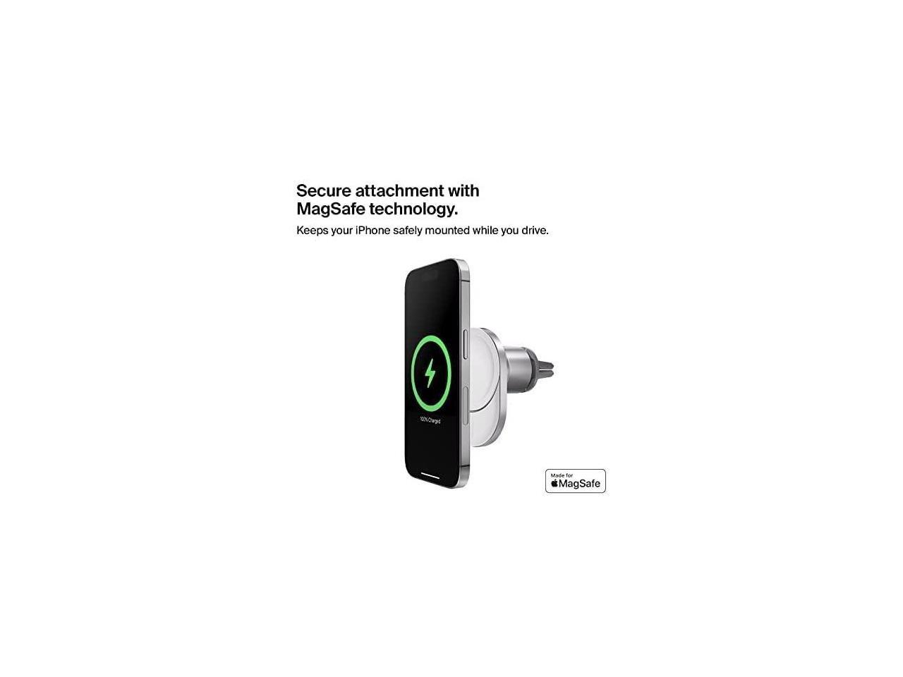 - Car vent-mounted wireless charger designed specifically for MagSafe compatible iPhone (iPhone 12 and later)