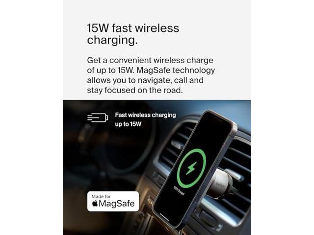 Belkin BoostCharge ProWireless CarChargerwithMagSafe15W Extra Strong Magnetic Vent Mount for iPhone 12, 13, 14