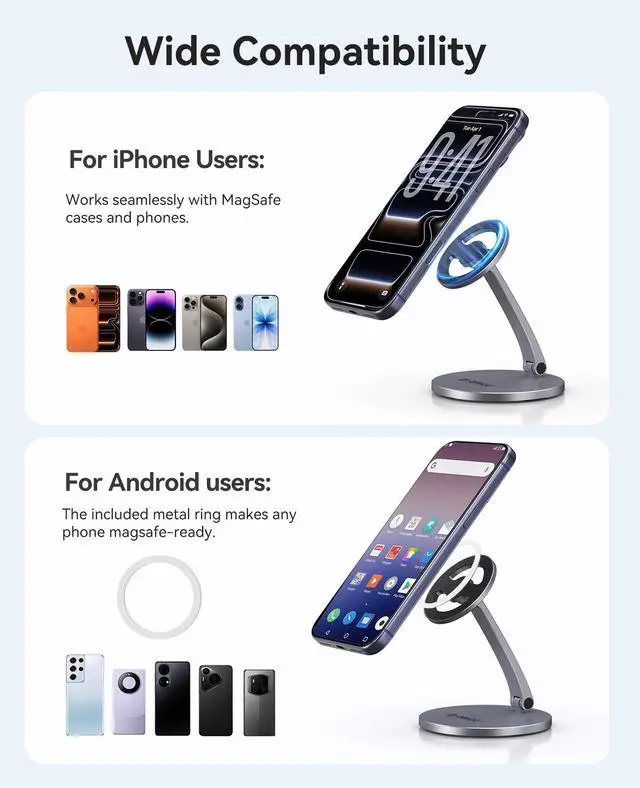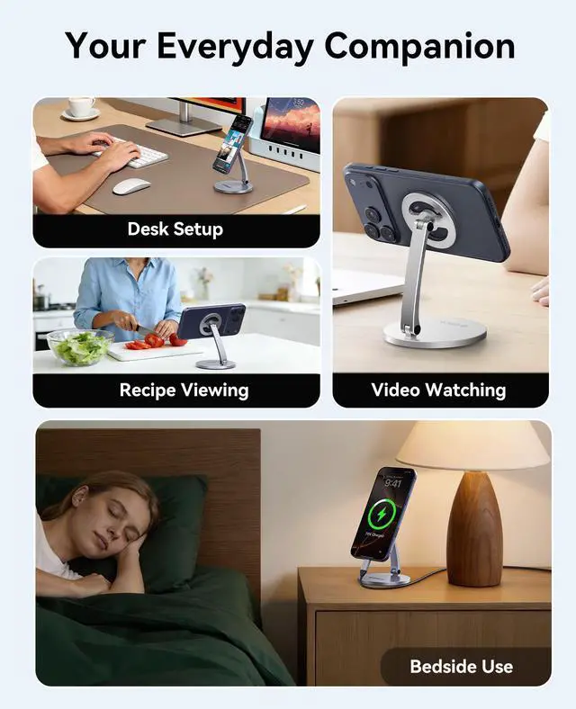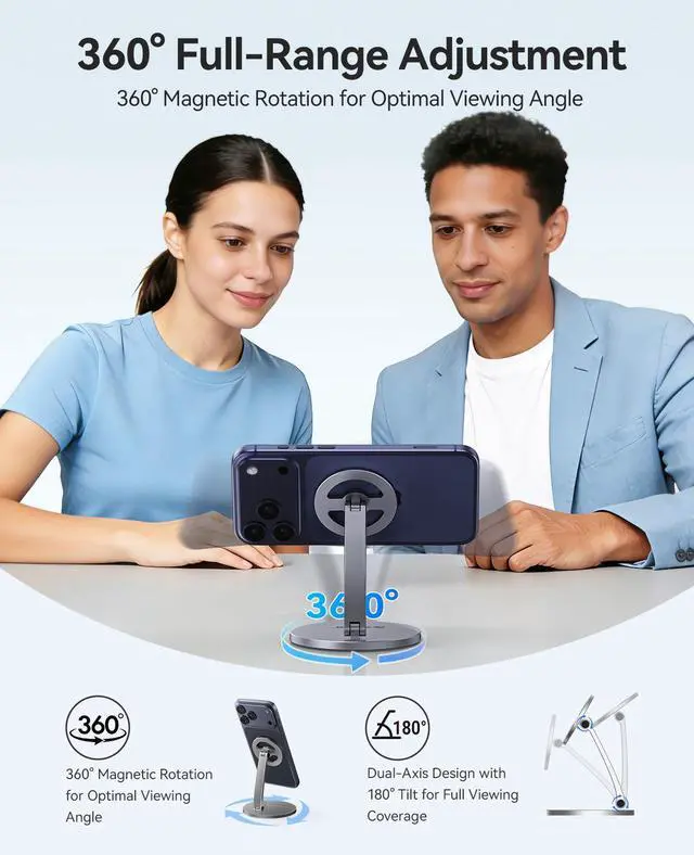 Flexible Viewing Angles: Designed as an adjustable phone stand, the dual-axis hinge system offers smooth 0180° tilt adjustment.