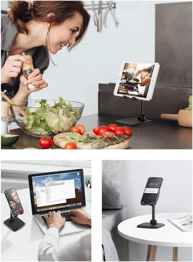 Multi-Angle Adjustable: Simply adjust and choose your preferred viewing angles from 5° to 60°. UGREEN desk phone holder stand holds your smartphone or mini tablet at a comfortable angle, ideal for watching the video, reading, video recording, browsing the web, playing games, or facetime call.