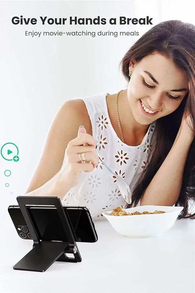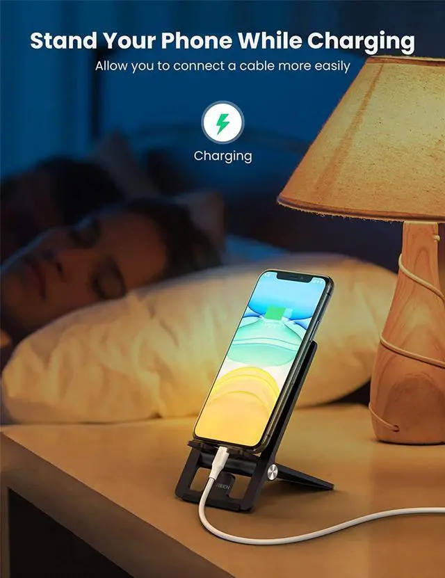 Choose Preferred Viewing Angle: Simply adjustable, UGREEN phone holder for desk stands your smart phone at a comfortable angle as you need, ideal for watching the video, reading, video recording, browsing the web, playing games, or facetime call. It is convenient to place your mobile device both vertically and horizontally and allow you to adjust among 100-degree angles.