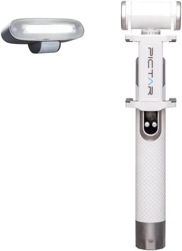 Pictar Smart Light Selfie Stick with Rechargeable Battery, Smokey White