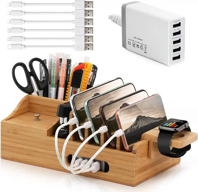 This charging station can charge most phones, support fast charging for multiple devices apple at the same time, compatible with iPhone 13/13Pro/13 Pro Max/12/12 Pro/12 Pro Max/SE/XR/X/XS/XS Max/11 Pro Max/11 Pro/11/8 Plus/8 or Android; Apple Watch 7/6/5/4/3/2/SE, A must device for apple fans. Say goodbye to individual chargers.