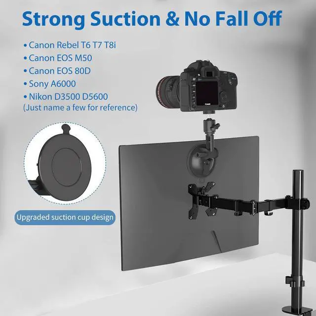 The suction cup has strong suction power, it can support your heavy dslr cameras sturdy.