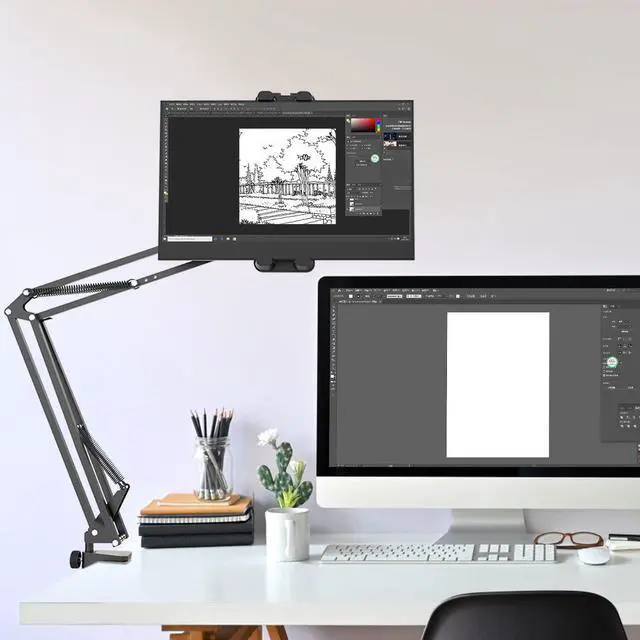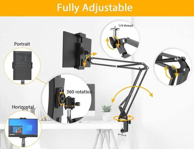 The tripod boom arm is totally adjustable and flexible, you can always find the position you need for you home working