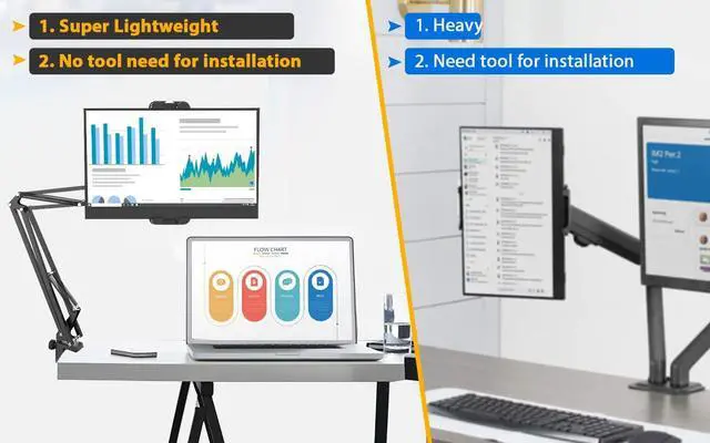 The clamp base is made of aluminium alloy material, it is light but sturdy which is more durable than other plastic one. It can mount to any surface up to 2 inch thick that fits most tables