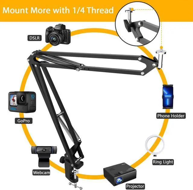 | Compatible with Webcams | Logitech webcam C920x, Brio 4k, C925e, C922x, C930e, C930, C920s, C960, C615 etc all with 1/4 threaded webcams |
