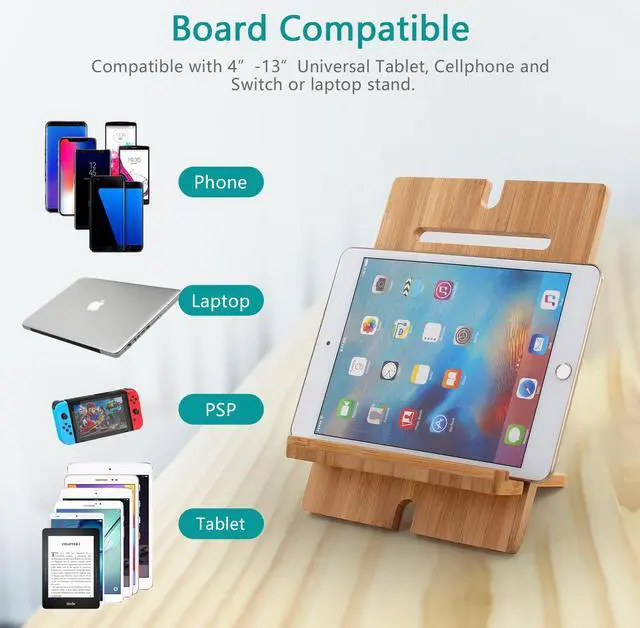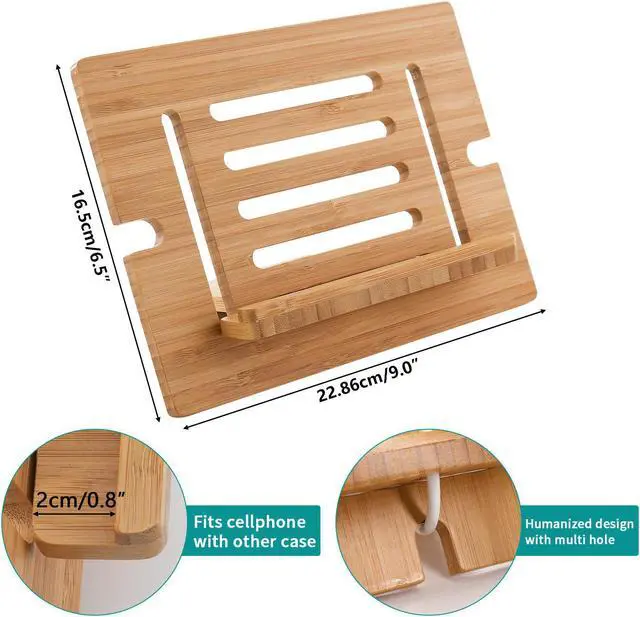 The Tablet Stand is made of 100% natural bamboo, which is stable and durable. The appearance of paint makes the surface more smooth and beautiful. It is also a perfect ornament.