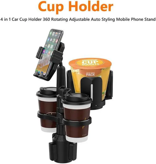 4 in 1 Car Cup Holder Expander Multifunctional Adjustable Car Cup Organizer 360 Rotating Water Cup Holder Removable Auto Styling