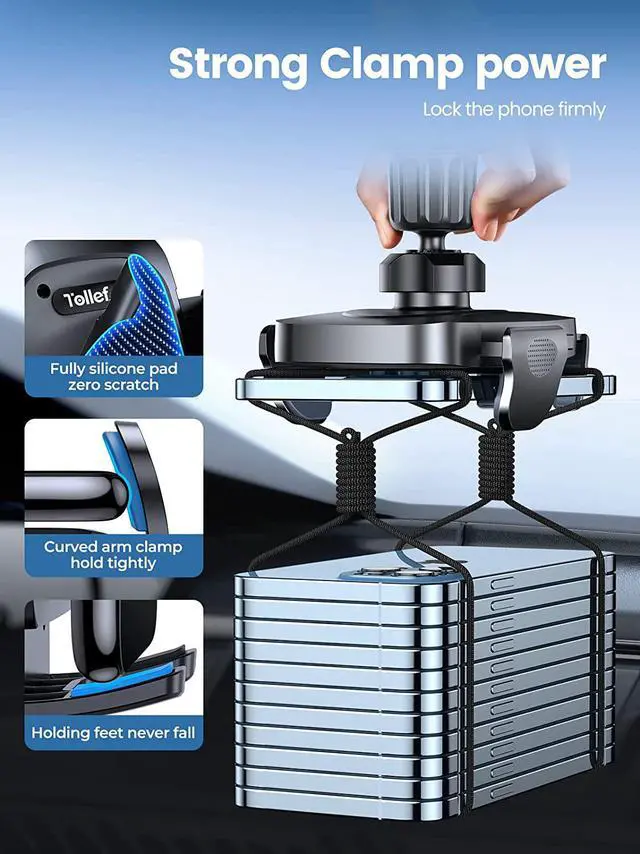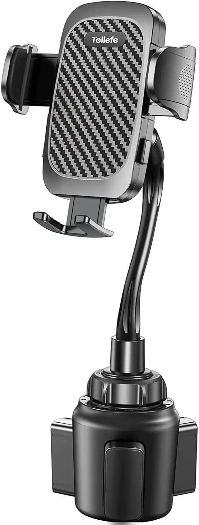[One Hand Operation] Only one finger click operation could release the Phone Mounts both side clamps with adjustable expandable bottom shelf TOLLEFE cup holder phone mount can securely lock your phone in place solves the common problems of popping vibrating sliding. Soft silicone pad-wrapped clamps and bottom shelf guarantee your phone is scratch-free. [Easy to Install] No extra helper needed No stubborn sticky residue left on your dashboard or windshield bothered just simply put the round base into your car cup holder screw the nut fixed it stay no shaking in the cupholder. All at once installation process makes TOLLEFE Cup Phone Holder ready to use come true like a piece of cake.