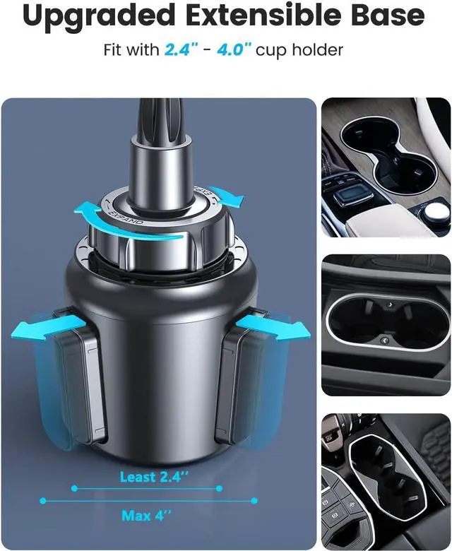 Universal Compatible: Friendly for all standard car cup holder (cup holder inner diameter 2.5 -4)? Jeep/F150/Explorer/Mazda/CX5/Outback/Subaru/Forester/Toyota/Highlander/Tacoma/Honda/Accord/Civic/CRV/Mercedes-Benz E-Class/GLE etc. Compatible for all 4.0 ''- 6.8 '' phones: iPhone 13/13 mini/13 pro max/ iPhone 12/12 mini/12 pro max/11/11 pro max/11 pro/SE/Xs/8/7 Samsung S21/S9 etc. Friendly suitable with cases phone (thickness within 0.67 mug case wallet case ring case belt case pop case).