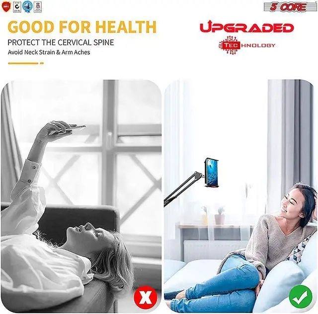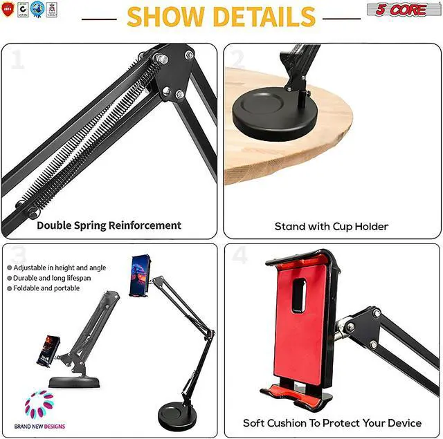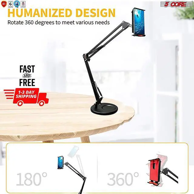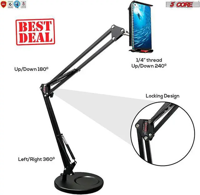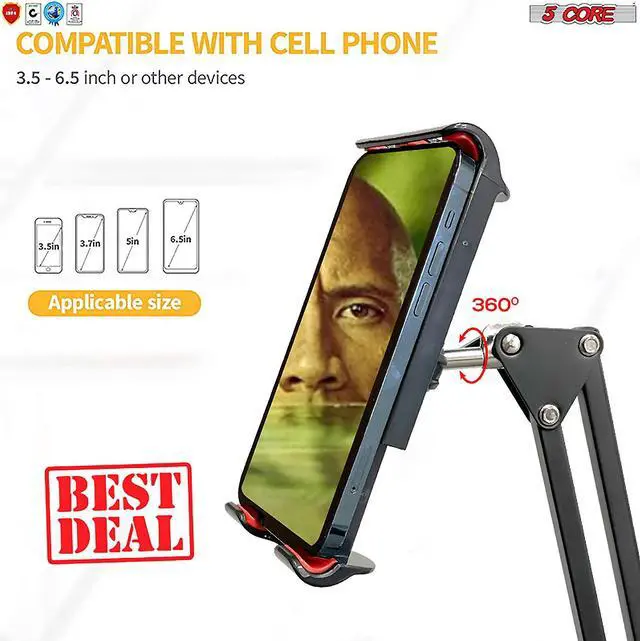 Elevate your mobile experience with our sleek black metal phone stand. Designed with a scissor arm for maximum flexibility, this cell phone holder is easily adjustable for the stand and phone clamp. Compatible with phones ranging from 3.5 to 6.5 inches, the 5 Core desk phone holder stand ensures a secure and perfect fit every time.