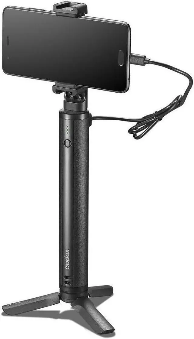 Part power bank, part grip, part tripod; the BPC-01 10, 000mAh Charging Grip with Mini Tripod from Godox is a compact, multifaceted accessory that can enhance your mobile photos and videos. As a grip, you get a steady platform for capturing handheld footage from a variety of angles. Inside the grip is a massive 10, 000mAh power bank, which you can use to power two devices simultaneously, such as a phone and LED illuminator. For even more stability, attach the included mini tripod with fold-flat legs to the bottom of the grip, or use it on its own for close-up shots.