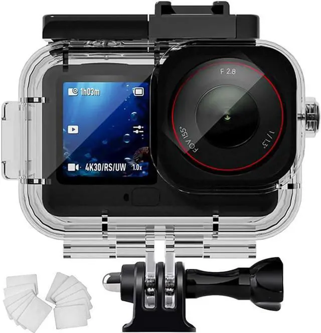 Package Contents:1 X waterproof case, 1 X invisible base, 1 x Screw, 12 X Anti-fog sheets.