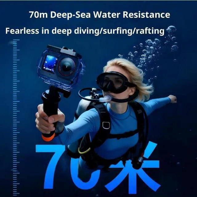 70m/230ft Waterproof with: This Osmo Action 6 Case With upgraded waterproof sealing ring and tight buckle that help avoid water leakage effectively. You can use your DJI Action 6 to record underwater activity deep to 70 meters/300ft without worrying about leaks.