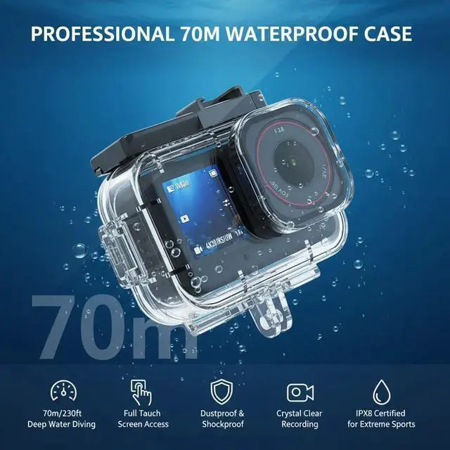 70m Deep-Sea Waterproof Housing & Full Protection --- Experience underwater adventures with the IPX8 certified waterproof housing case, designed to protect your DJI OSMO Action 6 camera at depths up to 70 meters (230 feet). Paired with the newly upgraded, ultra-clear tempered glass screen protector, your device receives comprehensive defense against scratches, impacts, and water damage, ensuring crystal-clear footage in any environment.