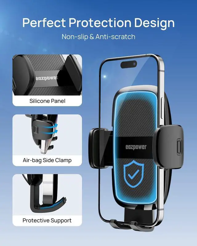 Wrap Phones Securely: More fitting solid silicone rubber on the 2-side clamps & holding feet can effectively avoid bumping, scratching, flying out, and abnormal noise on your cell phone at all times. Your device will stay secure on the phone car holder without any scratching of the blades. Enjoy a hands-free and fully protected driving.