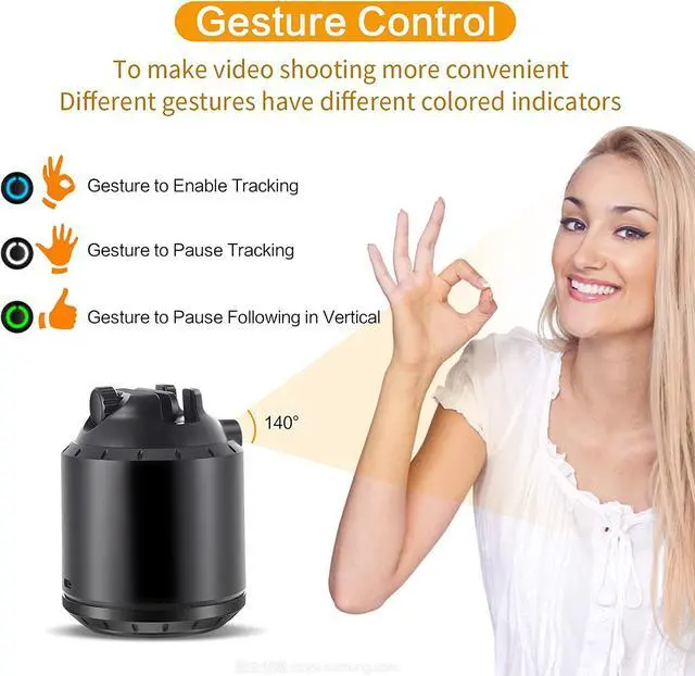 [Gesture Control - Convenient] - To make video shooting more convenient, our moving tripod uses gesture control to free your hands. It should be noted that please remain still before making gestures. Do the " " gesture to enable tracking, while doing the " " gesture to pause tracking. The rotating phone holder allows less manual adjustment to prevent the shooting device from getting dirty, which will bring lots of conveniences for you to shoot dancing, cooking, makeup tutorial videos, etc.