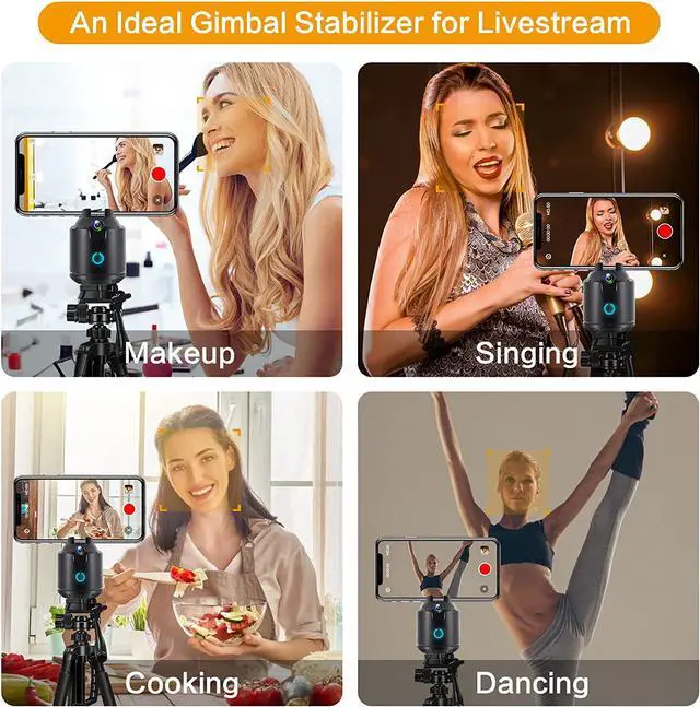 [Smooth, Intelligent AI Face Tracking] - With a new visual recognition algorithm, this auto face tracking phone holder tracks your face automatically, smoothly and moves 360° to ensure that you are always in the frame and that it does not make noise yet. You can move around the screen as you wish. Let' s use this 360 snapshot shelfystand for video calls, video shooting, and live streaming.