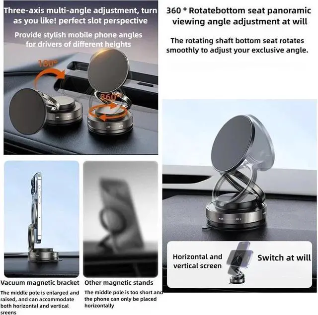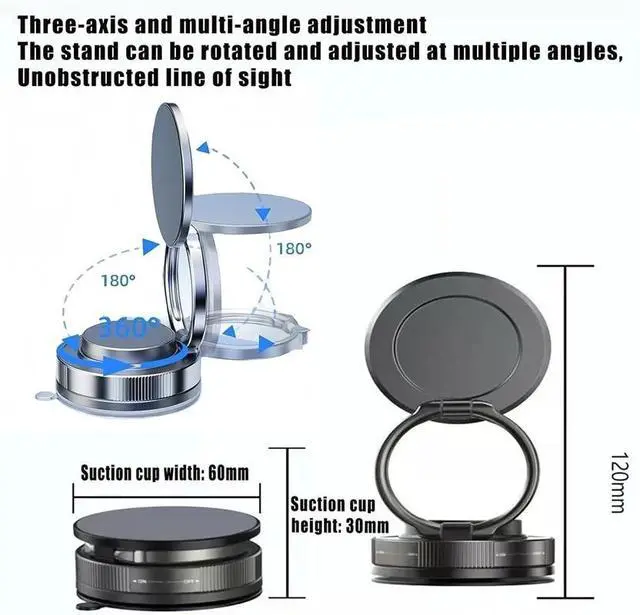 360 Vacuum Strong Magnetic Phone Holder Suction Cup Car Stand Foldable Car Mount