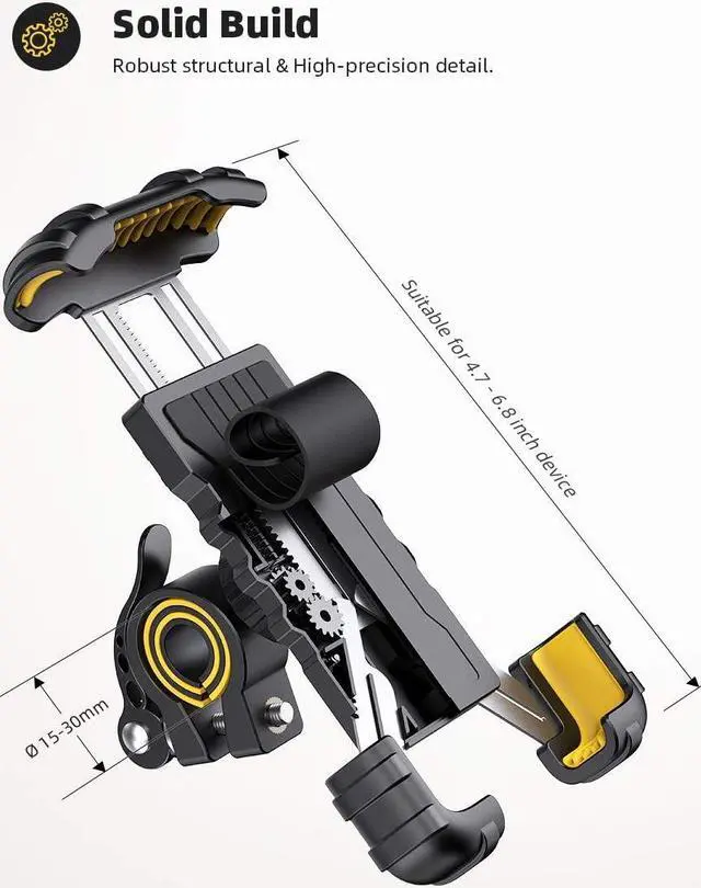 Wide Compatibility These universal bike accessories bike cell phone holder for 4.7 and 6.8 inches with thickness up to 15mm (including phone case), like iPhone 14, iPhone 14 Plus, iPhone 14 Pro, iPhone 14 Pro Max, iPhone 13 1 2 Pro Max Mini Xs XR X 8 Plus 7 6s 6, Galaxy S10 + S10e S9 S8, Note 9, LG and other cell phones.