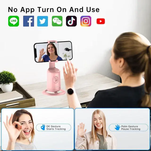 • Smart & Accurate Auto Tracking: Auto tracking phone holder with built-in camera and 360 degree rotation automatic track has AI intelligent recognition technology, accurately capture your every expression and capture your every move fast, no need extra complex action like APP download or BT connection. Make your beautiful and wonderful moments bloom in the center of the screen.