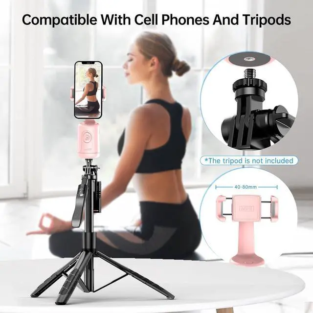 Compatible Tripod: Our SelfieShow 360 rotation smart face tracking tripod selfie has a univeral 1/4in port at the bottom compatible with most tripods, pefect for trip/travelling, portable smart cell phone mount for Vloggers/YouTubers/Group photoing/Adventures, video conference, product demo.