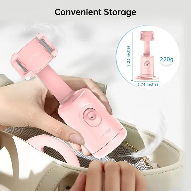 Auto Tracking Phone Holder, Auto Face Tracking Tripod, Portable All-in-one Smart Selfie Stick 360 Rotation Fast Face & Object Tracking Cameraman Robot Mount for Phone Video Vlog Live Streaming(Pink)