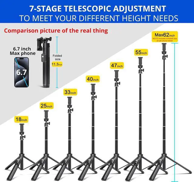 Adjustable Angle and Rotatable Phone Holder: 360°Rotatable Phone Holder and 180° Rotation Head allow you could take photos, video call or live broadcasting
