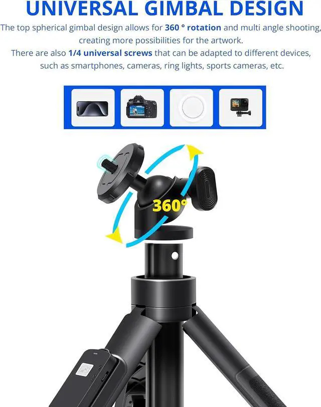 Widely CompatibleUniversal: Phone Holder fits most smartphones, compatible with All iPhone/Android Smart phones. With universal 1/4 inch screw, it fits for digital camera, DSLR, SLR, action camera, webcam, camcorder