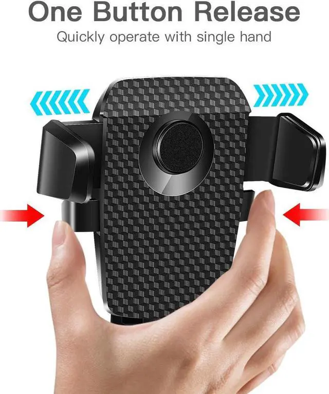 Release/Lock your Phone Quickly: Dashboard phone holder designs a release button on the back to achieve a smooth slide to release your phone with durable grip arms. Your phone will be held on stably after pressing the lock bar.