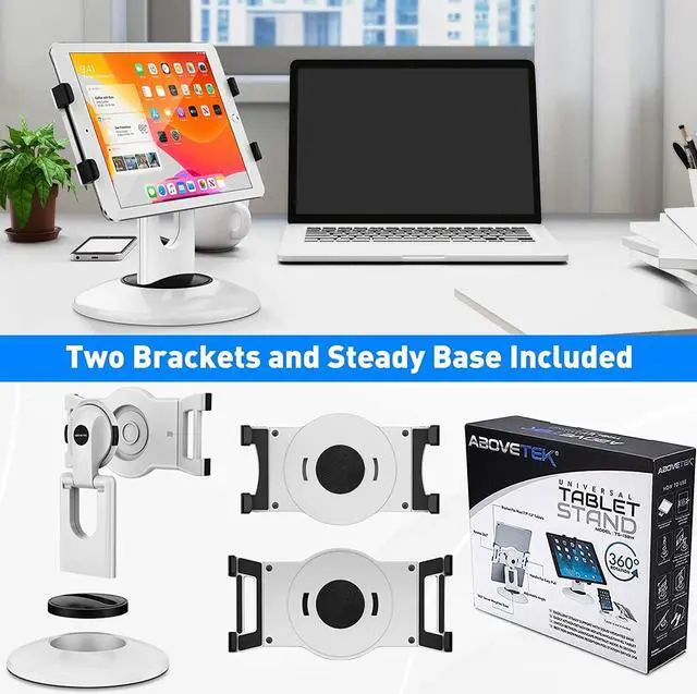 • AboveTEK Retail Kiosk iPad Stand 360° Rotating Commercial POS Tablet Stand Fits 6-13 (Screens) iPad Mini Pro-Business Swivel Tablet Holder for Store Office Reception Kitchen Desktop (White)