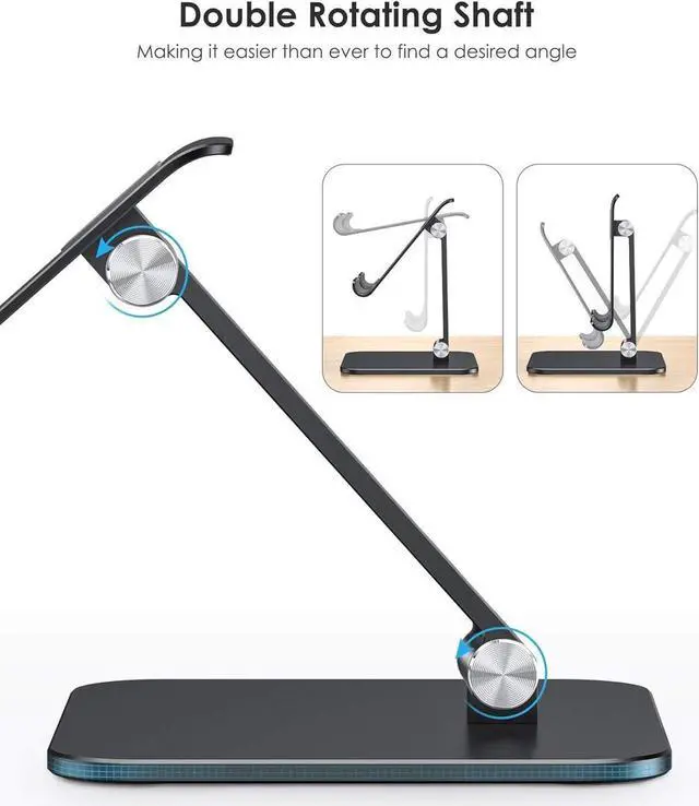 A Widened and Weighted Base This tablet stand features a weighted base to hold your portable monitor more securely. And even better its durable body optimizes stability and protection for both your devices and the holder. This adjustable tablet stand allows holding an external or portable monitor as a second screen for laptop. Dual Hinges This tablet holder is equipped with two hinges to offer even greater functionality. The upper hinge adjusts the angle while the lower hinge adjusts the height. This design enables the adjustable tablet stand to achieve the optimal positions and angles for writing and generally using your devices.