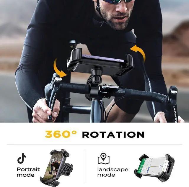 STURDY AND SAFE: This phone holder for bike can grips each corner of your phone tightly. It ensures the safety of your cell phone attached to the bike handlebar even on a bumpy road, Phone clip must be locked by the switch on the beside so that phone doesn' t fall off while riding!