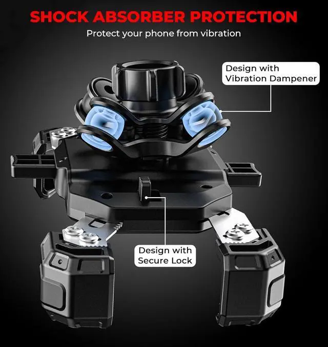 One-Handed Operation: The motorcycle phone mount with vibration dampener adopts the design of 1s immediate locking and 1s quick pick-up, realizing one-handed putting in or taking away the cell phone with one second, release the security lock on the back before removing the phone, fast and convenient
