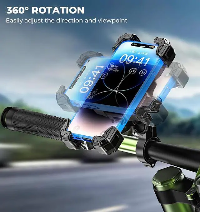360° Flexible Rotation: The motorcycle cell phone mount is designed with 360° rotating connecting ball, easily adjusting your smartphone to vertical or horizontal view, it' s convenient to answer the phone, GPS positioning, and play music during riding
