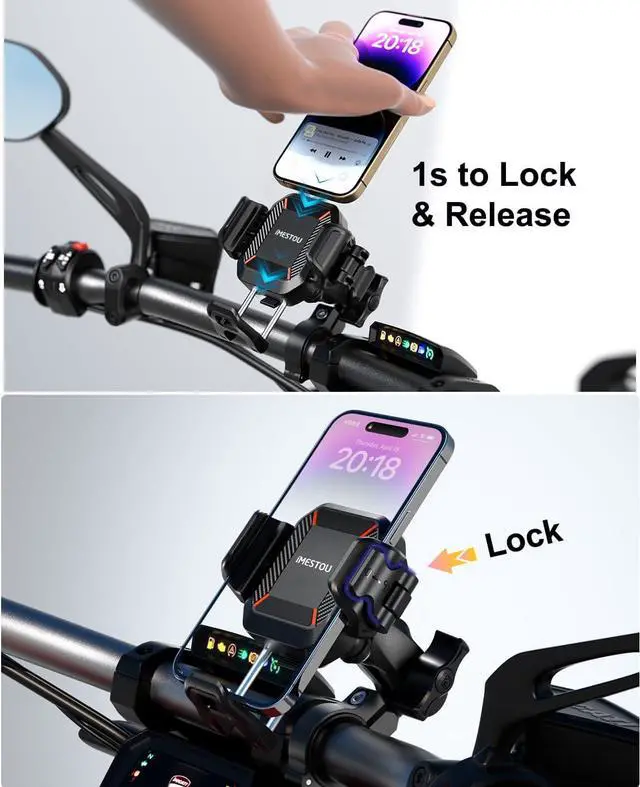 One-hand Operation: Enjoy the convenience of one-handed access to your mobile phone with this sturdy and durable motorcycle phone mount!