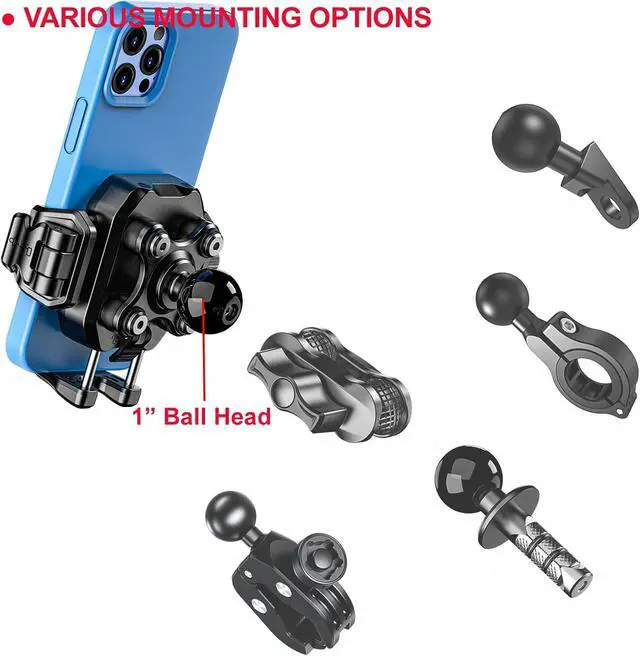 Ball Head: The 1 ball body bracket can be widely used for any brand of 1 double clamping arm such as RAM B, iMESTOU and so on, which makes people flexible to mount this motorcycle phone mount with dampers on your own handlebar base, mirror base and fork stem base and so on.
