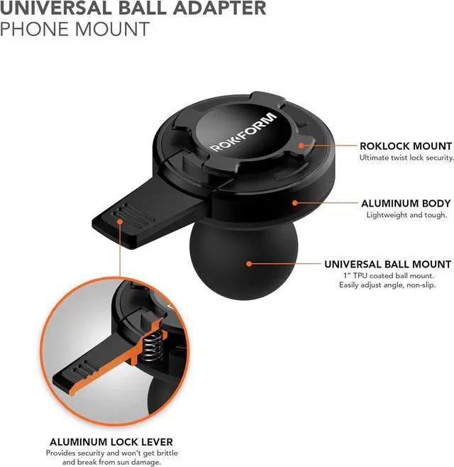 PACKAGED CONTENTS: Rokform Universal Ball Adapter Phone Mount and 1 safety lanyard. Does NOT include RAM mount, phone, or case.