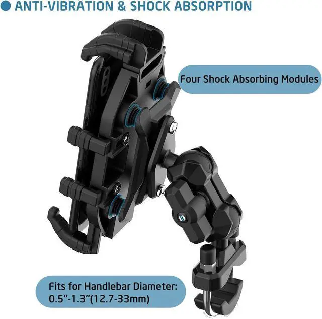 Anti-Theft Design: With a 55mm aluminum alloy double sleeve anti-theft clamp arm design, this phone mount provides extra security. The anti-theft screws on the clamp arm knob can be tightened to prevent the bracket from being easily detached or lost.