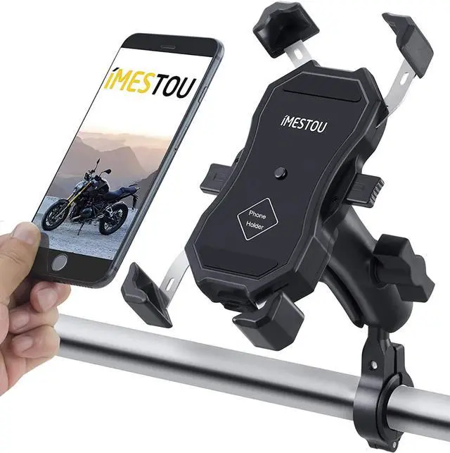 Super Safe & High-end Design: aluminum handlebar mount base & stainless steel auto clamping feet & 4-corner smartphones wrapping design, this 1 ball motorcycle phone mount dispels your worries about phone falling off/ installing arms breaking, ensures your cellphone super secure; large area of solf rubber on the corners and back protects your mobile from scratches and slipping.