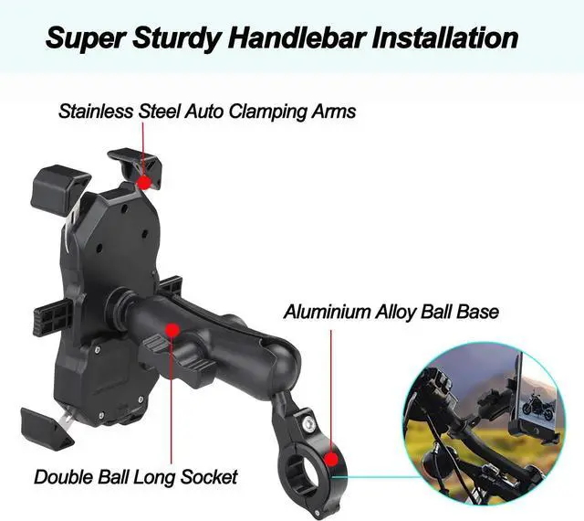 Balls: with 9cm long double socket handlebar base design, this bike phone holder provides the most stability and flexibility. It' s also compatible with ram mounts b size components.