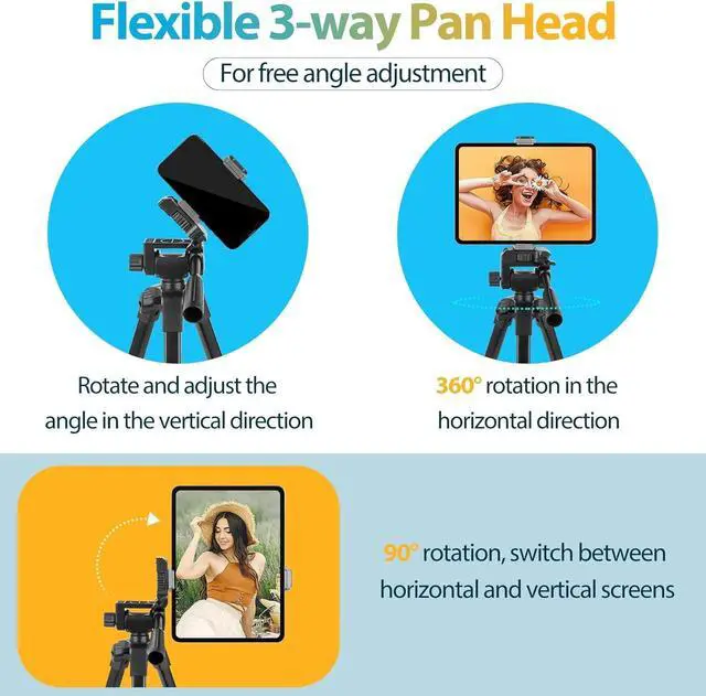 Multi-functional Tripod Kit: Aureday' s versatile tripod performs well with a wide range of devices, including smartphones, point-and-shoot cameras, and other small cameras. Additionally, the tripod has a sturdy tablet Holder that lets you mount a tablet to the tripod. Ideal for photographers, vloggers, YouTube, family gatherings, and live streaming.