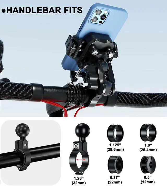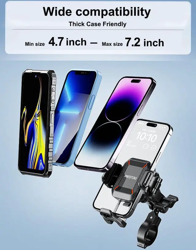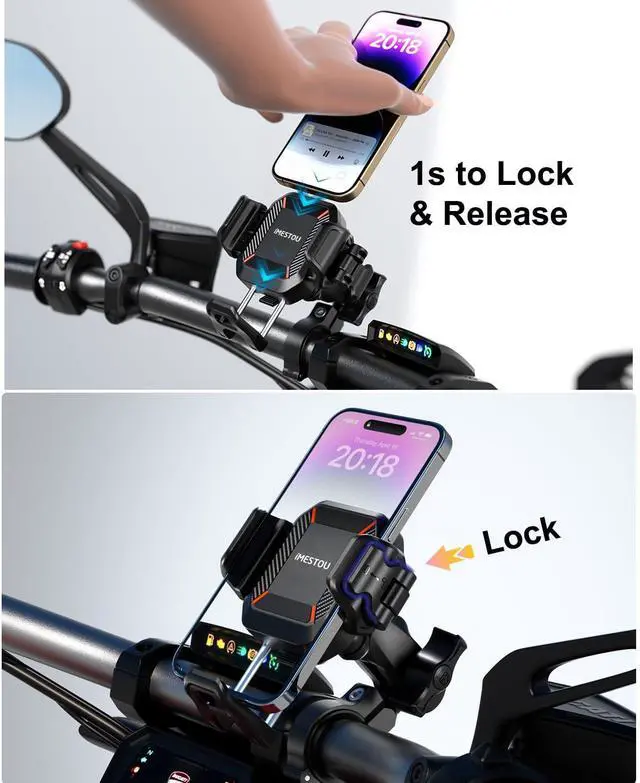 Enhance your riding adventures with the iMESTOU Anti-Vibration Phone Mount, designed to provide stability and convenience while on the road. This innovative mount features 4 sets of buffer shock absorbers, making it earthquake resistant and anti-shake, ensuring your phone stays securely in place even on rough terrains. The one-handed access to mobile phones allows for quick and easy operation, while the stainless steel telescopic rod and aluminum alloy mounting base offer durability and stability. The double ball head clamp arm and double mechanical switch locking system further enhance the stability of the mount, providing a secure hold for your device. Additionally, the upgraded anti-theft clip arm ensures that your phone remains safe and cannot be removed without specialized tools. The adjustable dimensions of the mount make it suitable for most 5.2"-7.2" mobile phones, with a width of 66-88mm and a thickness of 15mm, catering to a wide range of devices. The 1-inch dual ball head connection allows for 720° rotation, enabling you to adjust the screen horizontally and vertically for optimal viewing angles. Whether you're riding an electric vehicle, motorcycle, bicycle, or any other vehicle with a handlebar diameter of 22mm-32mm, the iMESTOU Anti-Vibration Phone Mount is the perfect companion. Its newly upgraded appearance with an exquisite and compact design adds a touch of elegance to your ride, making it a must-have accessory for all your outdoor adventures.